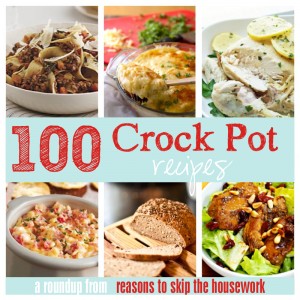 1. Melanie over at Reasons to Skip the Housework did a great post on 10 crock-pot dishes. I love this post because if you streamline making meals then it frees up your time so you can spend more time with family. Check out her post and yummy crock-pot cooking.