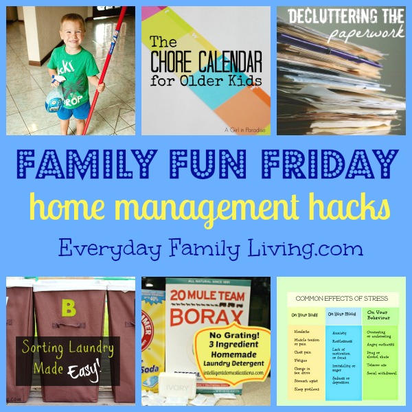 Stephanie Kay is a busy homeschooling mom of 5 and this week she is featuring some home management hacks. An organized home is a peaceful home and I think that’s something everyone can appreciate. Stephanie blogs at Everyday Family Living where she shares practical ideas for home organization, family activities, books and education, and health & fitness. When you have a minute, stop by Everyday Family Living on Facebook and give her a little FB love!