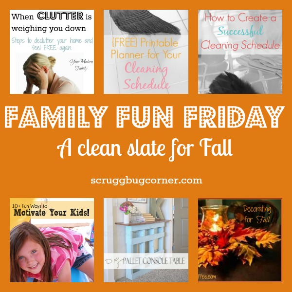 This week Family Fun Friday features ways to de-clutter and decorate for Fall, 10+ Fun Ways to Motivate Your Children, Southern Comfort Food and Chocolate Chip Pie, tips to help you de-stress and keep life in balance, fabulous resources for teaching science and homeschooling using free resources. You’ll never run out of great ideas for family fun at Family Fun Friday!
