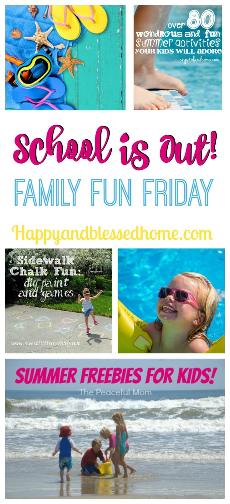 This week we are celebrating the arrival of warm weather, summer fun, and improving our homes on Family Fun Friday. Features include things like: Summer Chalk Fun, 80 Free or Inexpensive things to do with your kids this summer, a great home cleaning schedule and much more.  Plus, make sure you enter to WIN a Walt Disney World Vacation and see my easy recipe for a banana split!
