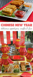 250 Chinese New Year with delicious recipe ideas, free printables for kids, red lantern craft, and red spring scroll craft from HappyandBlessedHome