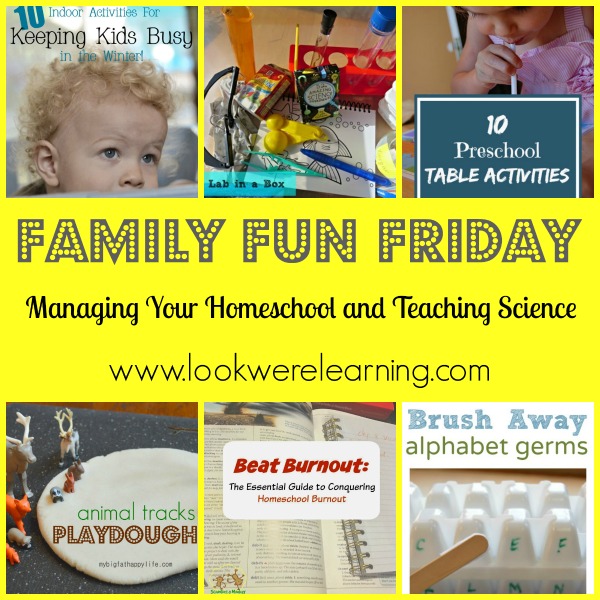 This week Selena is featuring ideas for managing your homeschool on her blog Look We’re Learning. With indoor activities for keeping kids busy, a lab in a box, preschool table activities, and a way to beat burnout, Selena has rounded up great ideas for homeschooling. If you have a minute, stop by Look We’re Learning and show Selena a little bloggy love on Facebook.