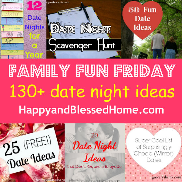 You know what is so exciting? My husband and I are celebrating our seven-year anniversary this weekend! Woo-hoo! And it’s like ya’ll knew or something because there was a whole host of fantastic ideas for date nights! Over 130 ideas in this collection. Many of the ideas are frugal or free – hooray! If you’re looking for ideas to initiate a creative date night – welcome to the JACKPOT of date night ideas from some of the most talented bloggers on the web. 🙂
