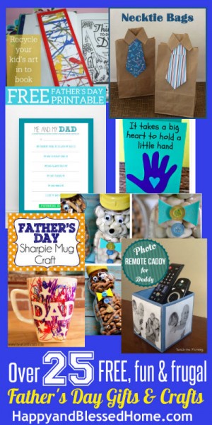 This week I featured some wonderful FREE, fun and frugal Father’s Day Gifts and Crafts from my friends on the Kid Blogger Network. You can download FREE coupons, wall art, a poem, and free templates to create Father’s Day Cards from my list of over 25 FREE, Fun and Frugal Father’s Day Gifts and Crafts. And, if you haven’t downloaded it yet, make sure to subscribe so you can get my my FREE Father’s Day Book. Click the links or images to go to the posts where you can learn more about these fun Father’s Day gifts and ideas.
