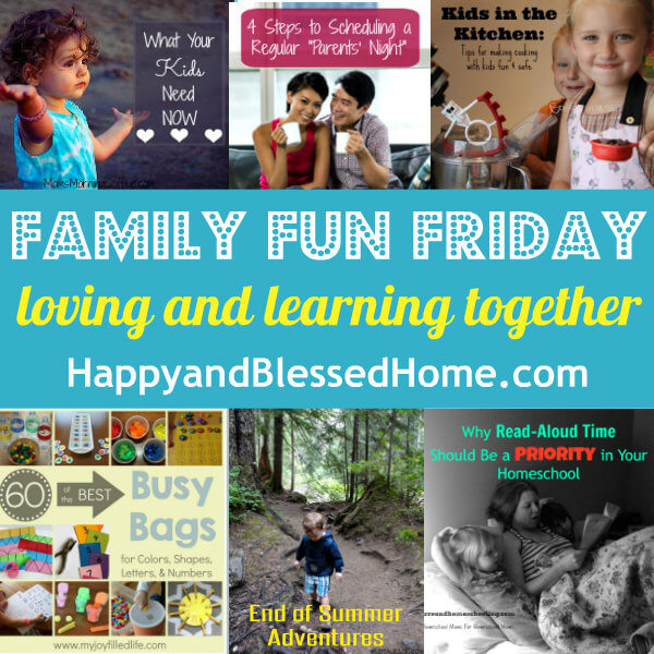 Family Fun Friday this week features cooking with kids, busy bags, outdoor fun, read-aloud family time, scheduling a regular Parent’s Night Out, homemade treats like chocolate sauce, fresh baked bread, carmel sauce, and wonderful children’s books for literacy and learning, You’ll never run out of great ideas for family fun at Family Fun Friday!