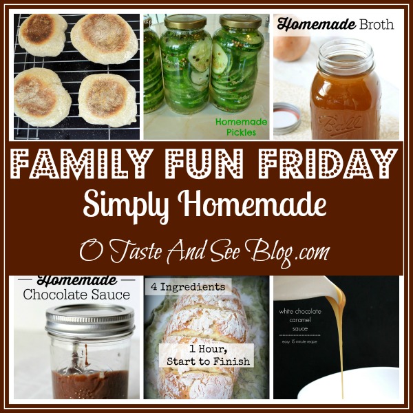 Homemade broth, homemade chocolate sauce, rich homemade bread, we’re celebrating all things homemade at Family Fun Friday this week. You can check out these fabulous recipes for homemade goodness over at Danita’s blog O Taste and See. When you have a minute, show her a little bloggy love on Facebook.
