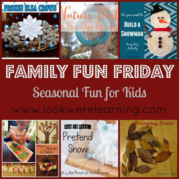 This week Selena is featuring Seasonal Fun for Kids on her blog Look We’re Learning. Create a Frozen Elsa Crown, build a snowman, make pretend snow, and more. If you have a minute, stop by Look We’re Learning and show Selena a little bloggy love on Facebook.