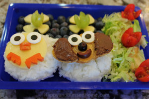 Blue Bento Box Farm Animals in Bento Boxes with FREE Printable Placemats from HappyandBlessedHome.com