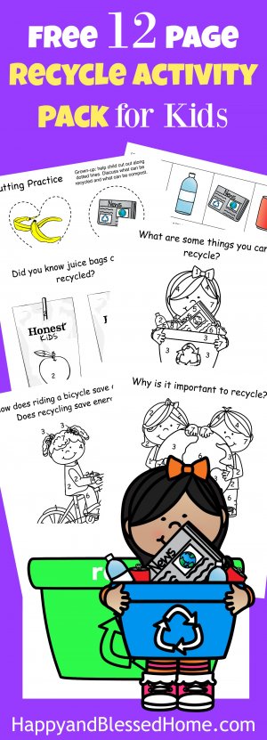 FREE 12 PAGE RECYCLE ACTIVITY PACK FOR KIDS with Coloring Pages