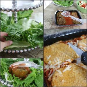 Chicken Parmesan and Stuffed Peppers entreés preparation and Christmas party display idea