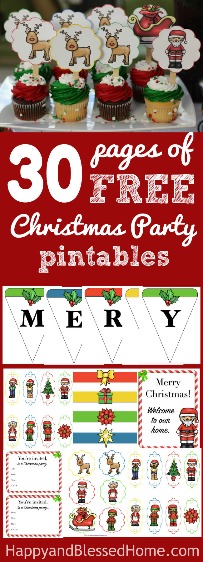 So glad I have these Christmas party decorations – 30 pages of FREE Christmas party printables on HappyandBlessedHome.com