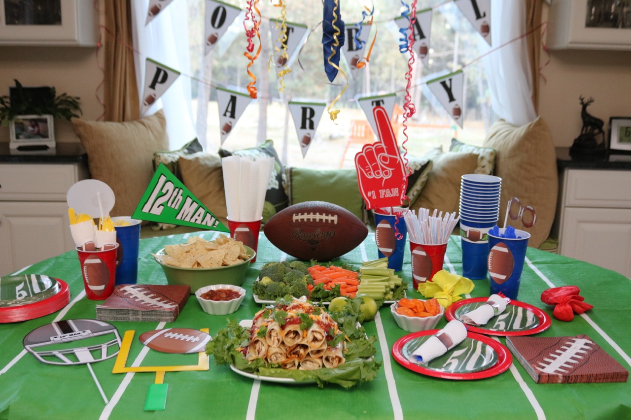 Adorable Football Party Banner and Decorations plus a delicious Tequila Lime Chicken Taquitos Recipe