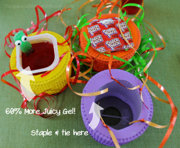 To “puff” up the baskets, I stretched them first – before I dropped in the Snack Pack Juicy Gels – I used the larger Juicy Gels inside of the baskets. They contain 60% more Juicy Gel in them.