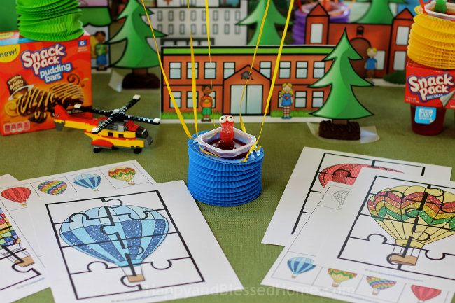 This shop has been compensated by Collective Bias, Inc. and its advertiser. All opinions are mine alone. #SnackPackMixins #CollectiveBias. Here I’ll share a fun craft to create Hot Air Balloons at home and a 50 page Hot Air Balloon Activity Pack for Kids with Hot Air Balloon Party Decorations.
