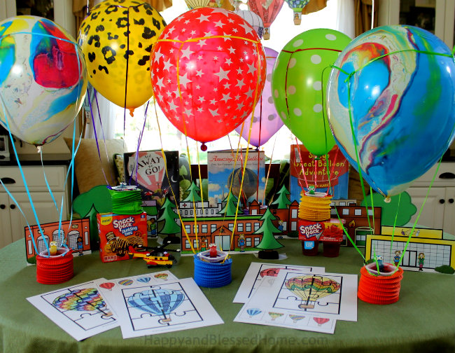 Fun idea for kids – host a Hot Air Balloon race complete with books, snacks, and FREE Hot Air Balloon Activity pack from HappyandBlessedHome