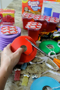 Trim one side of the paper lantern to make a hold large enough for your Juicy Gel Snack Cut Hot Air Balloon craft tutorial by HappyandBlessedHome
