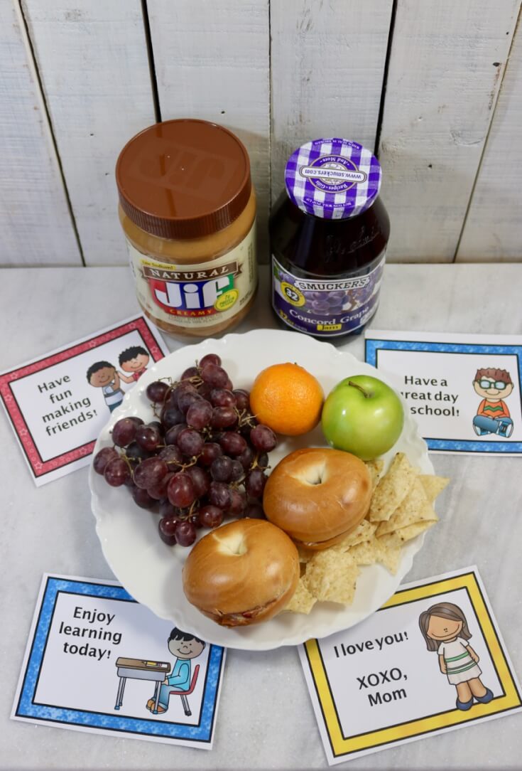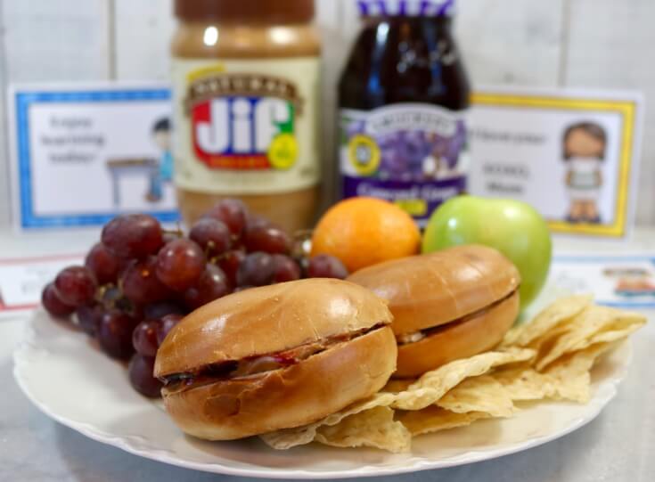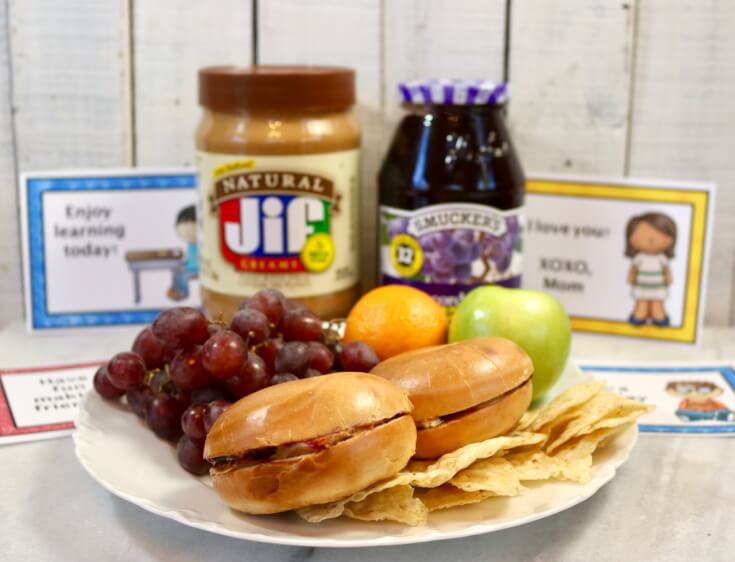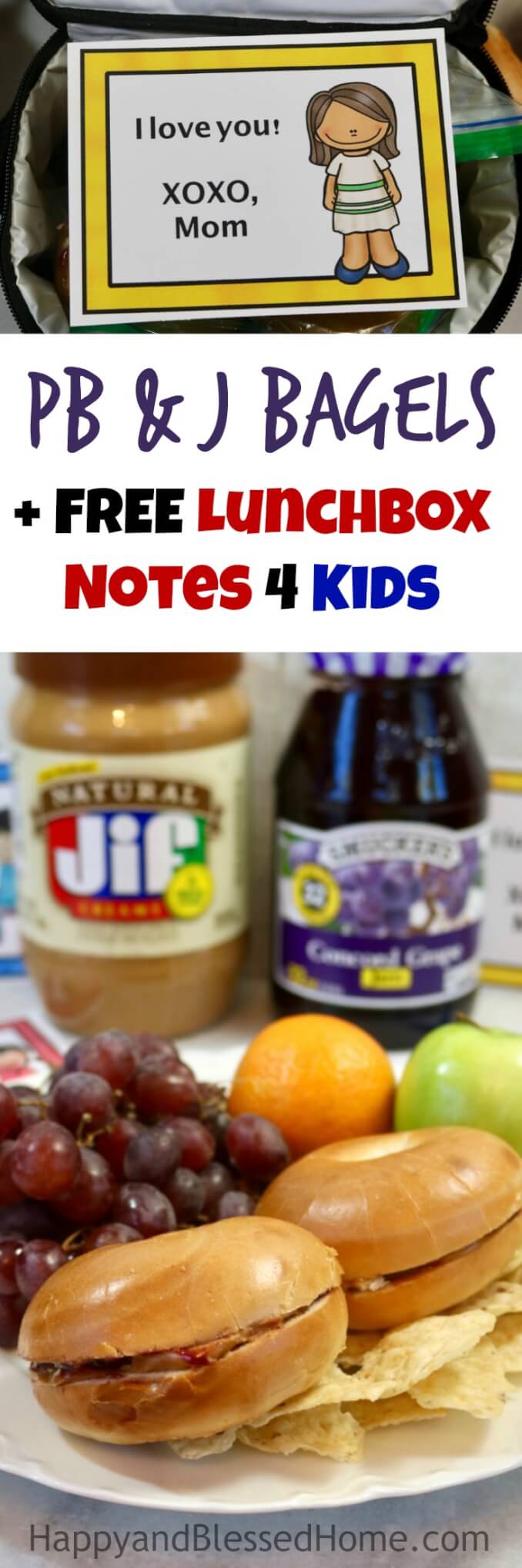 Here I’m sharing an easy recipe for a Peanut Butter and Jelly Bagel Sandwich plus FREE lunchbox notes for kids. If your child does not like squished sandwiches, this Peanut Butter and Jelly Bagel Sandwich will do the trick.