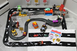 Checkered Flag Play Mat DIY Tutorial for Race Car Fun with reversible mat from HappyandBlessedHome