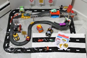 Checkered Flag Play Mat DIY Tutorial for Race Car Fun with reversible mat from HappyandBlessedHome