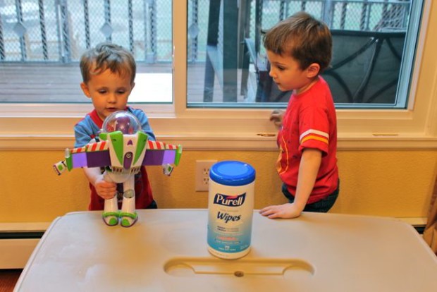 and after cleaning with PURELL® Hand Sanitizing Wipes – the space was clean enough for Buzz Lightyear to come out and play. 🙂