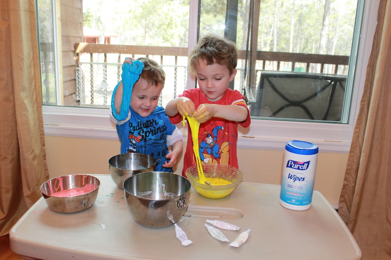 Despite our spring rainbow messes with slime, PURELL® Hand Sanitizing Wipes it was easy to keep the boys’ hands clean and our space tidy and inspiring!
