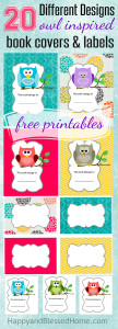 20 Different Designs Owl Inspired Book Covers and Labels Free printables HappyandBlessedHome.com