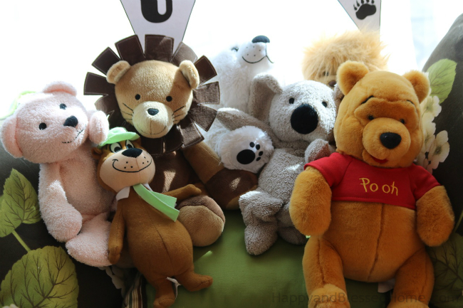 To create your own bear hunt at home, you’ll need a few bear hunt volunteers. We were fortunate enough to have some brave bear souls step forward for our bear hunt including Winnie the Pooh, Yogi Bear, a Kola bear, Polar bear, “Harry” the monkey, “Leo” the lion, and our light pink bear”Shelly.” I loved including non-bears in our hunt since it gave the boys a reason to think about bears vs. non bears. I encouraged my kids to give these bears and stuffed animals a “pep” talk before the hunt, and explained that our bears would need lots of hugs and TLC (tender loving care) during the hunt. We don’t want any bears or kids being injured; and we all want to be brave during our bear hunt.