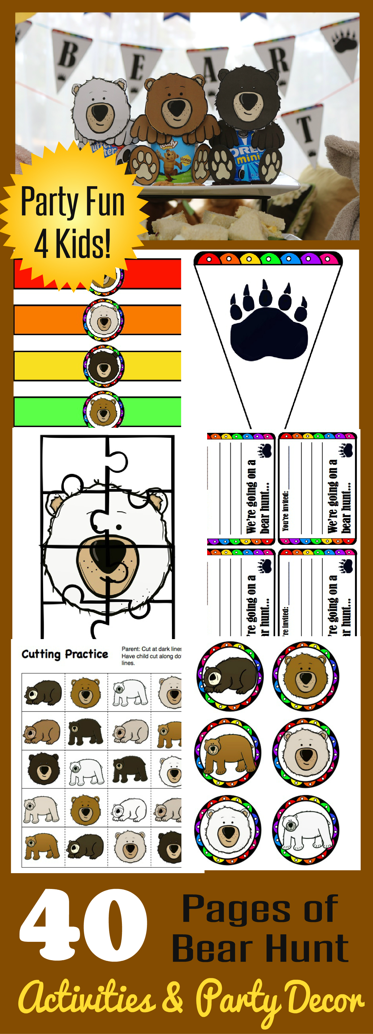 This shop has been compensated by Collective Bias and its advertiser. All opinions are mine alone. #SnackAndGo #CollectiveBias Here I’m sharing a 40 page FREE We’re Going on a Bear Hunt activity pack and Bear Hunt Party Decorations. I’ll share my bear hunting tips and some fun party food ideas. Keep reading to download your free 40 page bear activity pack.