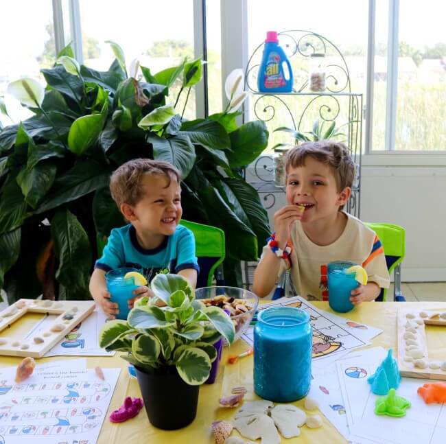 This beach themed play pack helped me teach my kids about the beach. I also added some sensory play, with tropical flavors like my Lemonade Pineapple Punch, and tropical scents, with my beach-themed candle. You can even wear the scent of the tropics – long after your days at the beach are over – with the new all® Fresh Tropical Mist™ laundry detergent.