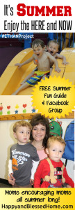 Its Summer Enjoy the Here and Now – free PDF summer planner and Facebook Group to share inspiring summer fun with other moms – details on HappyandBlessedHome.com