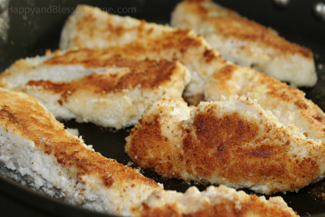 I attribute the rich flavor of this variety of gluten free Chicken Parmesan to two things – the coconut flour used to bread the chicken and the rich flavor of Francesco Rinaldi Pasta Sauce {it’s made by Italians you know!}