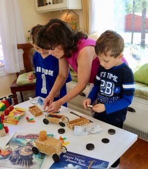 Showing the boys How to Make a Graham Cracker Cookie Train Recipe