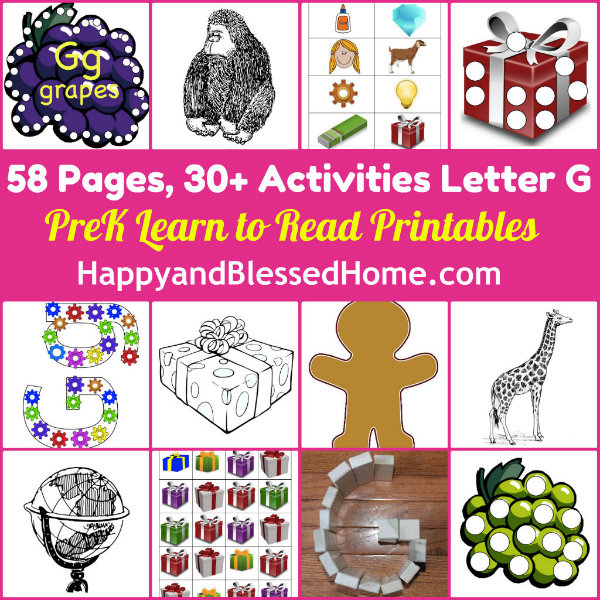 Click here to purchase the entire Letter G Printable Pack online. The entire pdf file for our letter “G” this week consists of 58 pages and 30+ activities and includes: