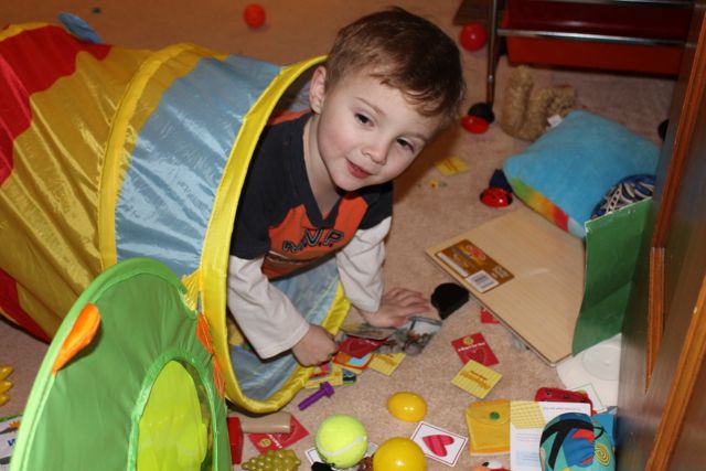 Games are always so much fun! Pretend you are an inch-worm. My 3 1/2 year old is crawling through the Melissa & Doug Happy Giddy Tunnel. A gift from auntie Liz.