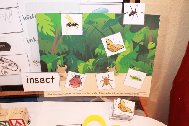 One of the fun sets of printables from the packet is the “Hide the insect in the jungle game.”
