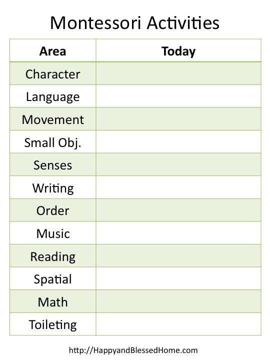 In my post on Montessori Planning I use Montessori guidelines to outline the key areas for focus when working with him. If you’re interested in Montessori, the post includes a planner and organizer to help you get started. I also created a vertical version of a Montessori planning chart for our Morning Board. I’ve attached the vertical versions below. Just click the image for a larger version that you can download and print at home.