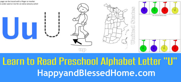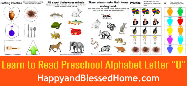 The letter “U” is for upside-down, underwater, underground, umbrella and more! This week I’m going to share what’s in our Printable Pack for 30 activities focused on learning the letter “U” and short words that start with the letter “U” by highlighting what’s inside the printable pack. These printables are from our Learn to Read Preschool Alphabet Letter Series, and they are intended to help you review vocabulary with your preschooler, venture into reading, as well as offer some fun crafts and activities to help inspire you along the way.