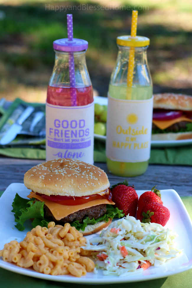 Enjoy Country Time Strawberry Lemonade with Mac n Cheese and a Hamburger tips on HappyandBlessedHome.com
