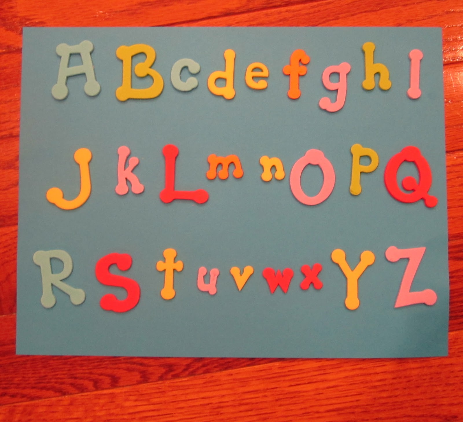 He can sing the entire ABCs and actually did it upon receipt of this alphabet page I created from foam letters I also purchased at Walmart.