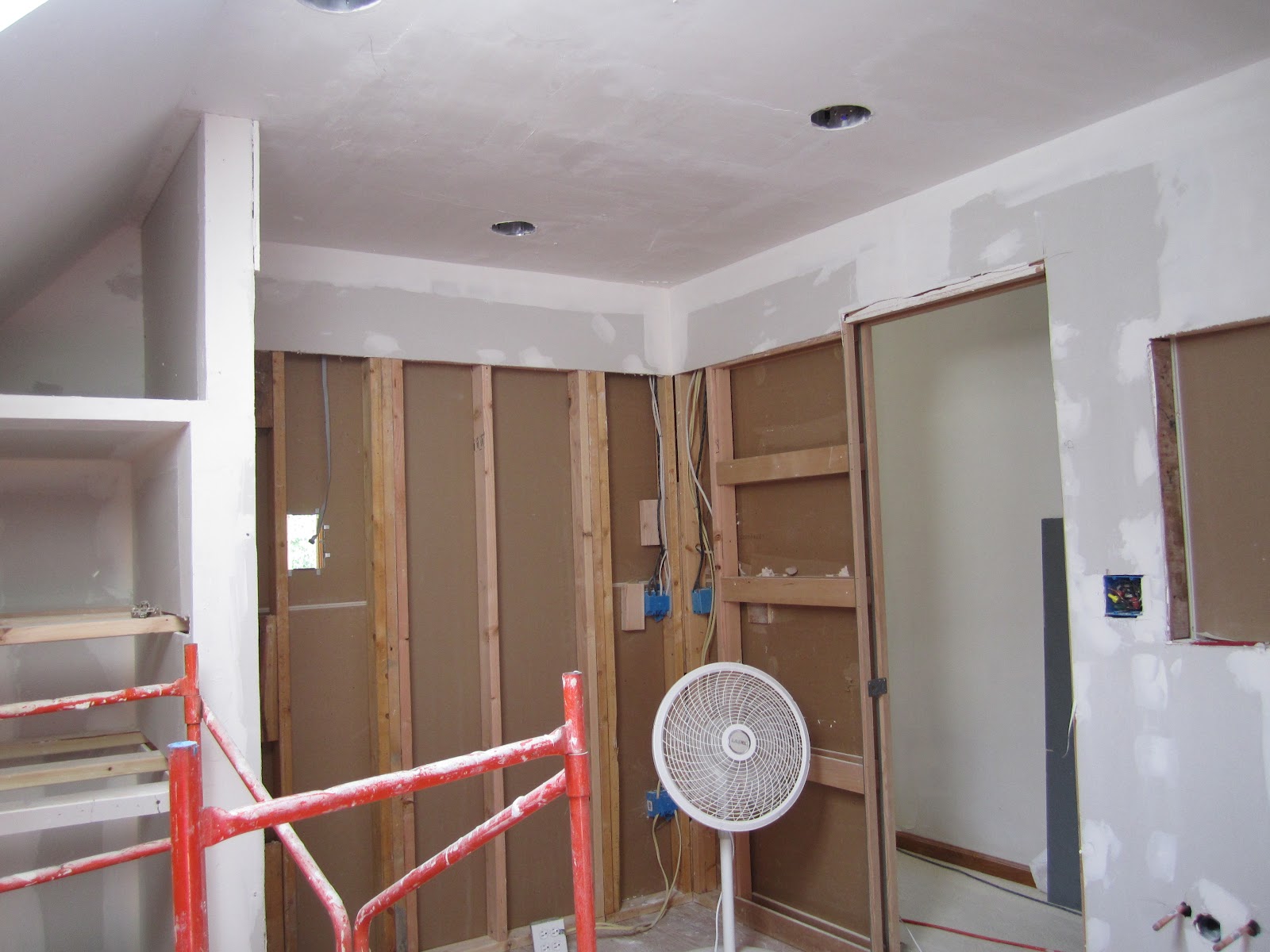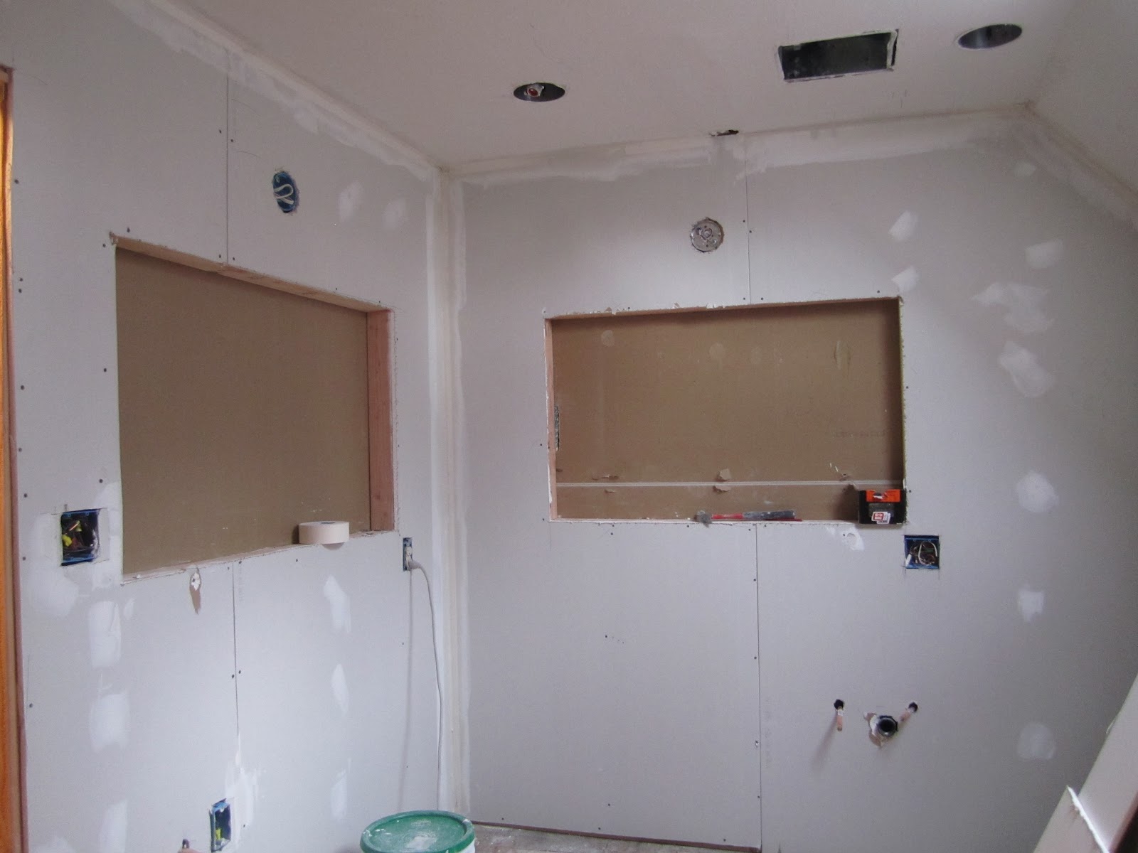 | cut-outs for medicine cabinets over vanity and new electrical |