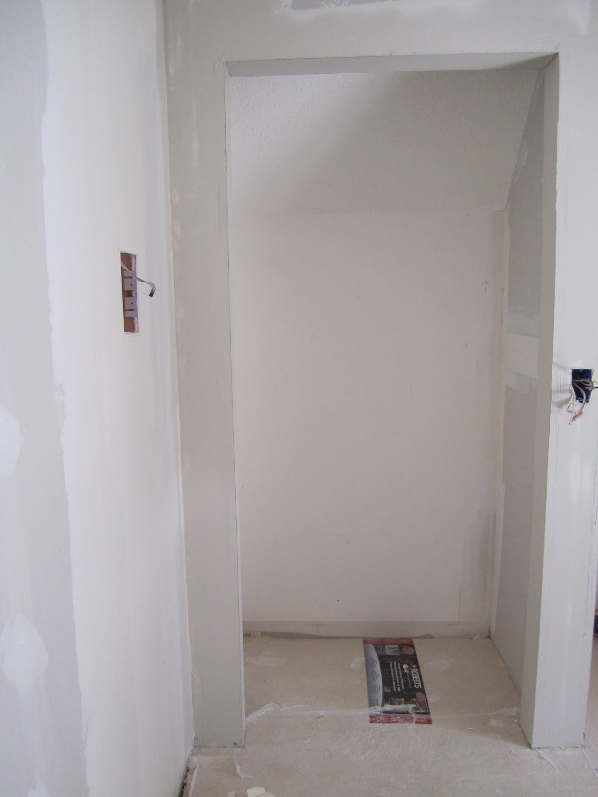 | new entrance and alcove for tub where the old closet used to be and a new linen closet inside the master bath |