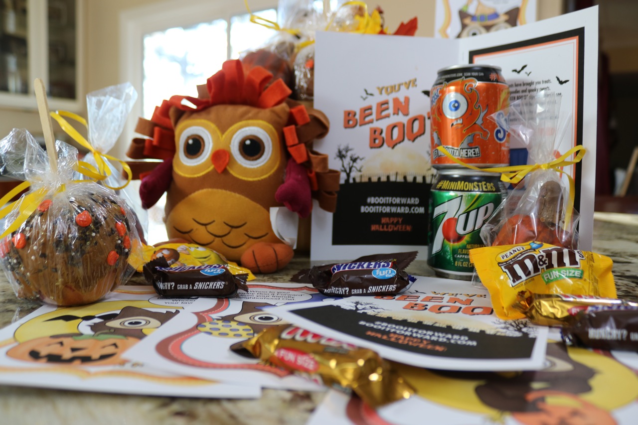 I’m so excited about “Boo It Forward” because it promotes “Boo’ing” a gift basket forward instead of “Trick or Treating”. What I like most about it, is that it provides an opportunity for my kids to give gifts and candy away instead of expecting something at a neighbor’s door. It turns Halloween on its ear and gives our family a chance to give gifts. What a great way to ring in the fall season and teach my kids about giving at the same time.