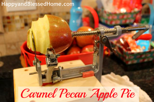 Peel Carmel Pecan Apple Pie Holiday Desserts Thanksgiving Pie Christmas Pie HappyandBlessedHome.com