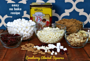 Ingredients for easy no bake Cranberry Almond Squares by HappyandBlessedHome.com