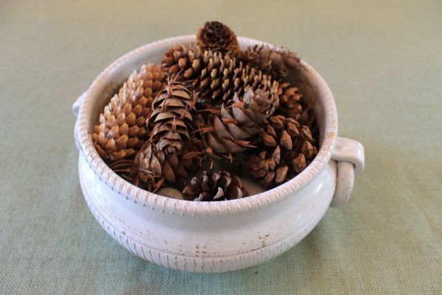 We used our pinecones to create the letter “P” and we gathered them together to make a nature-inspired centerpiece.