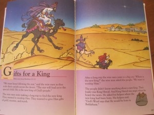 We’re on our next letter in our Preschool Alphabet Games. Since we’re on the letter K, it was a perfect time to talk about the three wise kings who brought baby Jesus gold, incense and myrrh. To make the letter study more festive, we created a king’s crown using gold-colored card stock. You can download the free pattern here: King’s Crown.