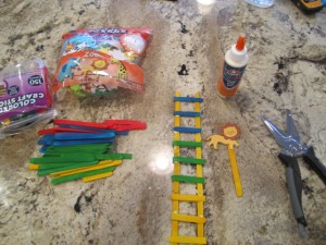 For our ladder building we did nothing fancy, just some popsicle sticks and some wood craft glue for this project.