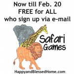 Also, as a part of our alphabet study I am giving away a free Safari Games Bundle to all Happy and Blessed Home subscribers. To read more about these free printables go to: Safari Games Free Printables.