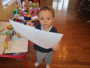 He also loved coloring with the crayons. He colored the quince pink, green and purple and I explained to him that it’s actually a yellow fruit. He was so proud of his artwork he promptly took it to his stuffed animal friend Donald Duck to show off his masterpiece.