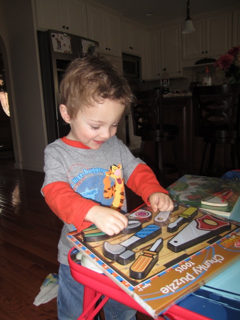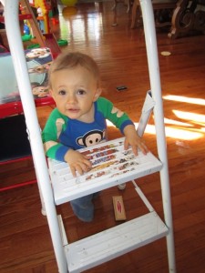 I’ve been asked by a few moms how long it takes to do these activities. I’d say it’s anywhere from five to fifteen minutes per activity and I only do two or three a day. Sometimes all our activities may be packed into one or two days – it just depends upon the week. The rest is free play. Sometimes Peanut will take a real interest in something and spend more time at it, if he does, I let him lead. I’m just trying to introduce him to concepts and make it FUN. 😉